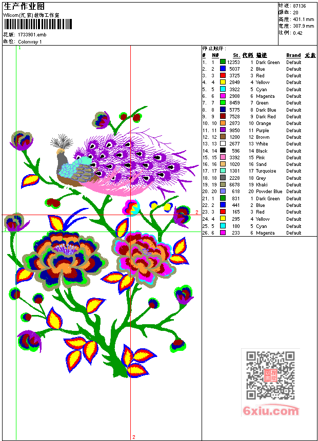 孔雀 大花 枝留工艺精品 点此上传花版兑乐绣币/现金 emb花版参数: 大小:302.50 KB / 尺寸:308*431[毫米] / 针数:87136针 / 线色:20 / 格式:emb / 版本:9 版带文件需绣花软件方可打开,可配色打印导出各种格式或直接上机绣。如无绣花软件可下载1:1模拟效果图。 PNG图片信息:大小:1.8 (MB) /图宽*高:1165x1631(像素) 上传作者( 雷人*** ) 获得乐绣币:30个 emb下载 1:1图下载 关闭 相似花型推荐: 凤飞九天工艺精品 凤凰 凤凰 吉祥如意 工艺精品 风景 船 工艺精品 房子圣诞树工艺精品 方福工艺精品 对称花工艺精品 鹰 长城 大展宏图乱针绣工艺精品 春夏秋冬-冬工艺精品 春鸟图工艺精品 赤龙天降工艺精品 风景 长城乱针绣工艺精品 牡丹花 彩蝶迎春工艺精品 人物 财神到工艺精品 人物财神工艺精品 马 冰与火工艺精品 上一个花样:福十字绣 工艺精品 下一个花样:凤飞九天工艺精品 凤凰