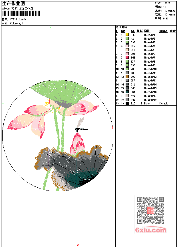 荷花蜻蜓 工艺精品 点此上传花版兑乐绣币/现金 emb花版参数: 大小:91.00 KB / 尺寸:144*144[毫米] / 针数:13928针 / 线色:19 / 格式:emb / 版本:9 版带文件需绣花软件方可打开,可配色打印导出各种格式或直接上机绣。如无绣花软件可下载1:1模拟效果图。 PNG图片信息:大小:0.3 (MB) /图宽*高:545x545(像素) 上传作者( 雷人*** ) 获得乐绣币:30个 emb下载 1:1图下载 关闭 相似花型推荐: 观音坐莲工艺精品 观音菩萨工艺精品 民族少女 古老的花园工艺精品 刘德华 人物 孤男寡女乱针绣工艺精品 恭喜发财之米奇毛巾绣工艺精品 福 鲤鱼 恭贺新禧工艺精品 牡丹花 鲤鱼 富贵有余工艺精品 富贵牡丹花工艺精品 牡丹花 锦鸟 富贵吉祥图工艺精品 福十字绣 工艺精品 孔雀 大花 枝留工艺精品 凤飞九天工艺精品 凤凰 凤凰 吉祥如意 工艺精品 风景 船 工艺精品 房子圣诞树工艺精品 上一个花样:荷花图工艺精品 下一个花样:观音坐莲工艺精品