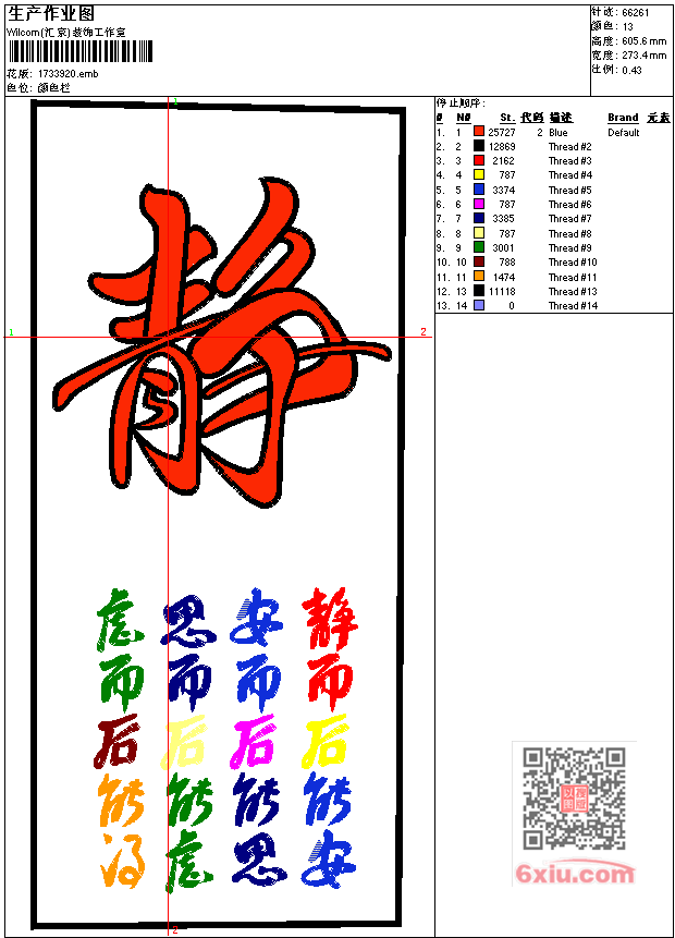 静 字画 工艺精品 点此上传花版兑乐绣币/现金 emb花版参数: 大小:137.00 KB / 尺寸:273*606[毫米] / 针数:66261针 / 线色:13 / 格式:emb / 版本:9 版带文件需绣花软件方可打开,可配色打印导出各种格式或直接上机绣。如无绣花软件可下载1:1模拟效果图。 PNG图片信息:大小:1.5 (MB) /图宽*高:1035x2291(像素) 上传作者( 雷人*** ) 获得乐绣币:30个 emb下载 1:1图下载 关闭 相似花型推荐: 黄河-壶口瀑布 乱针绣工艺精品 滑雪工艺精品 虎头工艺精品 荷花红莲鸳鸯工艺精品 字诗 和气生财工艺精品 荷花图工艺精品 荷花蜻蜓 工艺精品 观音坐莲工艺精品 观音菩萨工艺精品 民族少女 古老的花园工艺精品 刘德华 人物 孤男寡女乱针绣工艺精品 恭喜发财之米奇毛巾绣工艺精品 福 鲤鱼 恭贺新禧工艺精品 牡丹花 鲤鱼 富贵有余工艺精品 富贵牡丹花工艺精品 上一个花样:九龙宝座工艺精品 下一个花样:黄河-壶口瀑布 乱针绣工艺精品
