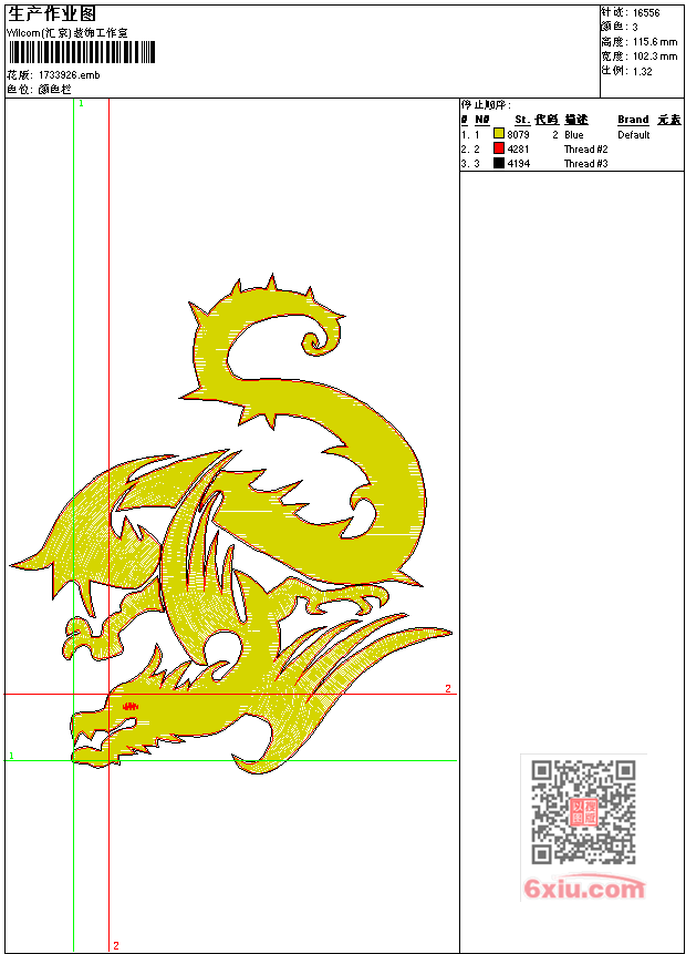 龙工艺精品 点此上传花版兑乐绣币/现金 emb花版参数: 大小:59.00 KB / 尺寸:102*116[毫米] / 针数:16556针 / 线色:3 / 格式:emb / 版本:9 版带文件需绣花软件方可打开,可配色打印导出各种格式或直接上机绣。如无绣花软件可下载1:1模拟效果图。 PNG图片信息:大小:0.2 (MB) /图宽*高:387x438(像素) 上传作者( 雷人*** ) 获得乐绣币:30个 emb下载 1:1图下载 关闭 相似花型推荐: 动物 湖 两只狐狸工艺精品 诗字 莲蓬工艺精品 立体绣小狗工艺精品 诗词字 兰亭序工艺精品 九龙宝座工艺精品 静 字画 工艺精品 黄河-壶口瀑布 乱针绣工艺精品 滑雪工艺精品 虎头工艺精品 荷花红莲鸳鸯工艺精品 字诗 和气生财工艺精品 荷花图工艺精品 荷花蜻蜓 工艺精品 观音坐莲工艺精品 观音菩萨工艺精品 上一个花样:龙工艺精品 下一个花样:动物 湖 两只狐狸工艺精品