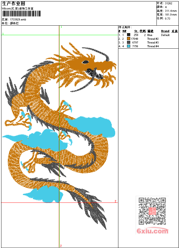 龙工艺精品 点此上传花版兑乐绣币/现金 emb花版参数: 大小:143.00 KB / 尺寸:182*311[毫米] / 针数:31262针 / 线色:4 / 格式:emb / 版本:9 版带文件需绣花软件方可打开,可配色打印导出各种格式或直接上机绣。如无绣花软件可下载1:1模拟效果图。 PNG图片信息:大小:0.8 (MB) /图宽*高:689x1178(像素) 上传作者( 雷人*** ) 获得乐绣币:30个 emb下载 1:1图下载 关闭 相似花型推荐: 龙工艺精品 龙工艺精品 龙工艺精品 动物 湖 两只狐狸工艺精品 诗字 莲蓬工艺精品 立体绣小狗工艺精品 诗词字 兰亭序工艺精品 九龙宝座工艺精品 静 字画 工艺精品 黄河-壶口瀑布 乱针绣工艺精品 滑雪工艺精品 虎头工艺精品 荷花红莲鸳鸯工艺精品 字诗 和气生财工艺精品 荷花图工艺精品 上一个花样:龙工艺精品 下一个花样:龙工艺精品