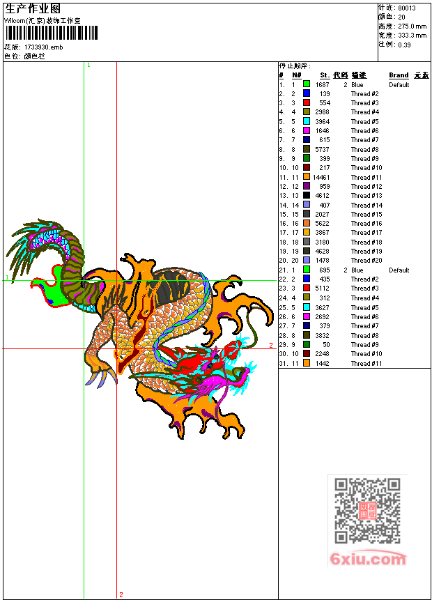 龙工艺精品 点此上传花版兑乐绣币/现金 emb花版参数: 大小:312.50 KB / 尺寸:333*275[毫米] / 针数:80013针 / 线色:20 / 格式:emb / 版本:9 版带文件需绣花软件方可打开,可配色打印导出各种格式或直接上机绣。如无绣花软件可下载1:1模拟效果图。 PNG图片信息:大小:1.3 (MB) /图宽*高:1261x1041(像素) 上传作者( 雷人*** ) 获得乐绣币:30个 emb下载 1:1图下载 关闭 相似花型推荐: 龙工艺精品 龙工艺精品 龙工艺精品 龙工艺精品 动物 湖 两只狐狸工艺精品 诗字 莲蓬工艺精品 立体绣小狗工艺精品 诗词字 兰亭序工艺精品 九龙宝座工艺精品 静 字画 工艺精品 黄河-壶口瀑布 乱针绣工艺精品 滑雪工艺精品 虎头工艺精品 荷花红莲鸳鸯工艺精品 字诗 和气生财工艺精品 上一个花样:龙凤喜缘乱针绣工艺精品 下一个花样:龙工艺精品