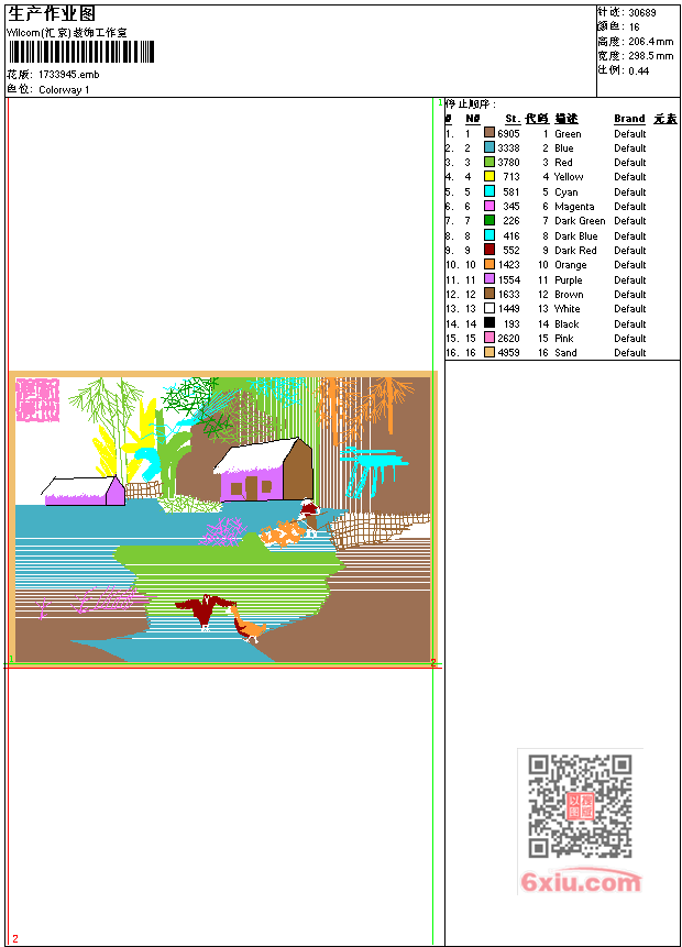风景 草屋 农村 牧野风光工艺精品 点此上传花版兑乐绣币/现金 emb花版参数: 大小:99.00 KB / 尺寸:298*206[毫米] / 针数:30689针 / 线色:16 / 格式:emb / 版本:9 版带文件需绣花软件方可打开,可配色打印导出各种格式或直接上机绣。如无绣花软件可下载1:1模拟效果图。 PNG图片信息:大小:0.8 (MB) /图宽*高:1130x781(像素) 上传作者( 雷人*** ) 获得乐绣币:30个 emb下载 1:1图下载 关闭 相似花型推荐: 牡丹图工艺精品 牡丹花工艺精品 猛虎上山工艺精品 猛虎气像-十字绣 工艺精品 人物 头像 美女乱针绣工艺精品 梅兰竹菊-菊工艺精品 梅兰竹菊 鸟 -工笔竹工艺精品 梅花开工艺精品 鸟 玫瑰花工艺精品 红太阳 头像人物 毛泽东主席乱针绣工艺精品 风景 黄金满地 满园春色乱针绣工艺精品 字诗 满江红工艺精品 人物 罗汉工艺精品 龙凤喜缘乱针绣工艺精品 龙工艺精品 上一个花样:荷花 鲤鱼 年年有余工艺精品 下一个花样:牡丹图工艺精品