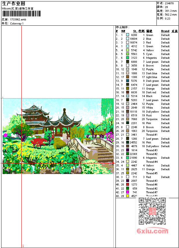风景 亭台楼阁 苏州盘门-仁寿亭工艺精品 点此上传花版兑乐绣币/现金 emb花版参数: 大小:1.05 MB / 尺寸:562*381[毫米] / 针数:234870针 / 线色:28 / 格式:emb / 版本:9 版带文件需绣花软件方可打开,可配色打印导出各种格式或直接上机绣。如无绣花软件可下载1:1模拟效果图。 PNG图片信息:大小:7.1 (MB) /图宽*高:2127x1443(像素) 上传作者( 雷人*** ) 获得乐绣币:30个 emb下载 1:1图下载 关闭 相似花型推荐: 松齡鹤寿工艺精品 松鹤长寿工艺精品 四神兽之朱雀工艺精品 风景 亭台楼阁 四季画乱针绣工艺精品 人物 四大美女-貂蝉工艺精品 风景 窗 江南 水乡乱针绣工艺精品 双鹿图工艺精品 双龙戏珠乱针绣工艺精品 十字绣家和万事兴工艺精品 十二生肖之蛇工艺精品 牡丹花 荣华工艺精品 风景 热带雨林乱针绣工艺精品 风景 亭台楼阁 平湖秋月乱针绣工艺精品 牛工艺精品 荷花 鲤鱼 年年有余工艺精品 上一个花样:字画 苏轼诗词工艺精品 下一个花样:松齡鹤寿工艺精品