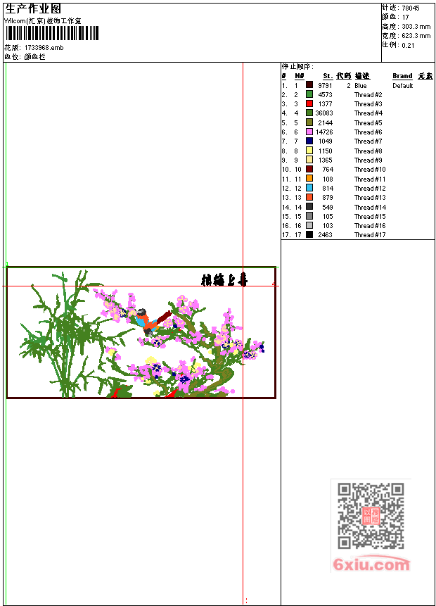 梅花 竹 喜鹊 喜上眉梢工艺精品 点此上传花版兑乐绣币/现金 emb花版参数: 大小:376.00 KB / 尺寸:623*303[毫米] / 针数:78045针 / 线色:17 / 格式:emb / 版本:9 版带文件需绣花软件方可打开,可配色打印导出各种格式或直接上机绣。如无绣花软件可下载1:1模拟效果图。 PNG图片信息:大小:1.9 (MB) /图宽*高:2358x1148(像素) 上传作者( 雷人*** ) 获得乐绣币:30个 emb下载 1:1图下载 关闭 相似花型推荐: 风景 松树 黄山 万壑松风工艺精品 风景 田园-乱针工艺精品 风景 水墨中堂画 唐寅名画-独游工艺精品 风景 唐伯虎名画-青山工艺精品 字画 苏轼诗词工艺精品 风景 亭台楼阁 苏州盘门-仁寿亭工艺精品 松齡鹤寿工艺精品 松鹤长寿工艺精品 四神兽之朱雀工艺精品 风景 亭台楼阁 四季画乱针绣工艺精品 人物 四大美女-貂蝉工艺精品 风景 窗 江南 水乡乱针绣工艺精品 双鹿图工艺精品 双龙戏珠乱针绣工艺精品 十字绣家和万事兴工艺精品 上一个花样:向日葵乱针绣工艺精品 下一个花样:风景 松树 黄山 万壑松风工艺精品