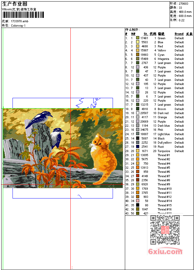 小猫戏鸟乱针绣工艺精品 点此上传花版兑乐绣币/现金 emb花版参数: 大小:1.17 MB / 尺寸:600*400[毫米] / 针数:270603针 / 线色:33 / 格式:emb / 版本:7 版带文件需绣花软件方可打开,可配色打印导出各种格式或直接上机绣。如无绣花软件可下载1:1模拟效果图。 PNG图片信息:大小:8.1 (MB) /图宽*高:2270x1513(像素) 上传作者( 雷人*** ) 获得乐绣币:30个 emb下载 1:1图下载 关闭 相似花型推荐: 向日葵乱针绣工艺精品 梅花 竹 喜鹊 喜上眉梢工艺精品 风景 松树 黄山 万壑松风工艺精品 风景 田园-乱针工艺精品 风景 水墨中堂画 唐寅名画-独游工艺精品 风景 唐伯虎名画-青山工艺精品 字画 苏轼诗词工艺精品 风景 亭台楼阁 苏州盘门-仁寿亭工艺精品 松齡鹤寿工艺精品 松鹤长寿工艺精品 四神兽之朱雀工艺精品 风景 亭台楼阁 四季画乱针绣工艺精品 人物 四大美女-貂蝉工艺精品 风景 窗 江南 水乡乱针绣工艺精品 双鹿图工艺精品 上一个花样:小鸟工艺精品 下一个花样:向日葵乱针绣工艺精品