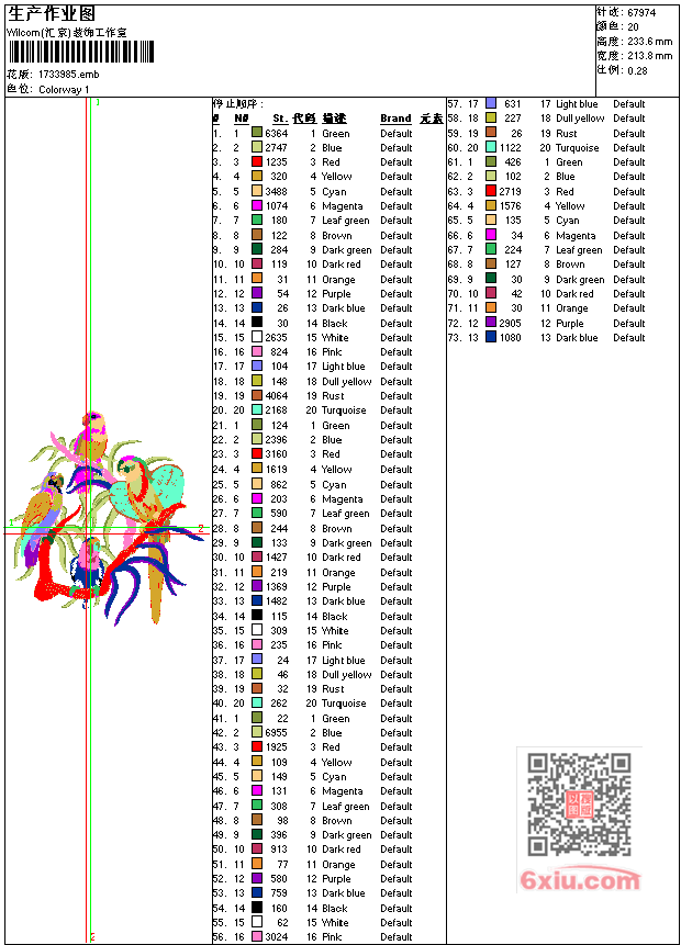 鸟 鹦鹉工艺精品 点此上传花版兑乐绣币/现金 emb花版参数: 大小:343.50 KB / 尺寸:214*234[毫米] / 针数:67974针 / 线色:20 / 格式:emb / 版本:9 版带文件需绣花软件方可打开,可配色打印导出各种格式或直接上机绣。如无绣花软件可下载1:1模拟效果图。 PNG图片信息:大小:0.8 (MB) /图宽*高:809x884(像素) 上传作者( 雷人*** ) 获得乐绣币:30个 emb下载 1:1图下载 关闭 相似花型推荐: 美女 嫦娥飞天 人物 字画 工艺精品 竹林小鸟工艺精品 竹工艺精品 童子 招财进宝工艺精品 中国风 月夜鲤工艺精品 人物 越女采莲工艺精品 中国风美女 鹤工艺精品 船 一帆风顺工艺精品 字 业精于勤工艺精品 熊猫工艺精品 雄鹰展翅图工艺精品 唐卡 新版观音工艺精品 小鸟工艺精品 小猫戏鸟乱针绣工艺精品 向日葵乱针绣工艺精品 上一个花样:马 魇魔驹工艺精品 下一个花样:美女 嫦娥飞天 人物 字画 工艺精品