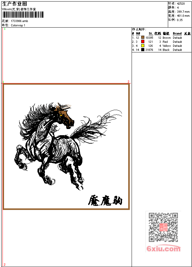 马 魇魔驹工艺精品 点此上传花版兑乐绣币/现金 emb花版参数: 大小:97.00 KB / 尺寸:401*400[毫米] / 针数:42520针 / 线色:4 / 格式:emb / 版本:9 版带文件需绣花软件方可打开,可配色打印导出各种格式或直接上机绣。如无绣花软件可下载1:1模拟效果图。 PNG图片信息:大小:1.1 (MB) /图宽*高:1517x1512(像素) 上传作者( 雷人*** ) 获得乐绣币:30个 emb下载 1:1图下载 关闭 相似花型推荐: 鸟 鹦鹉工艺精品 美女 嫦娥飞天 人物 字画 工艺精品 竹林小鸟工艺精品 竹工艺精品 童子 招财进宝工艺精品 中国风 月夜鲤工艺精品 人物 越女采莲工艺精品 中国风美女 鹤工艺精品 船 一帆风顺工艺精品 字 业精于勤工艺精品 熊猫工艺精品 雄鹰展翅图工艺精品 唐卡 新版观音工艺精品 小鸟工艺精品 小猫戏鸟乱针绣工艺精品 上一个花样:麒麟工艺精品-中国风 下一个花样:鸟 鹦鹉工艺精品