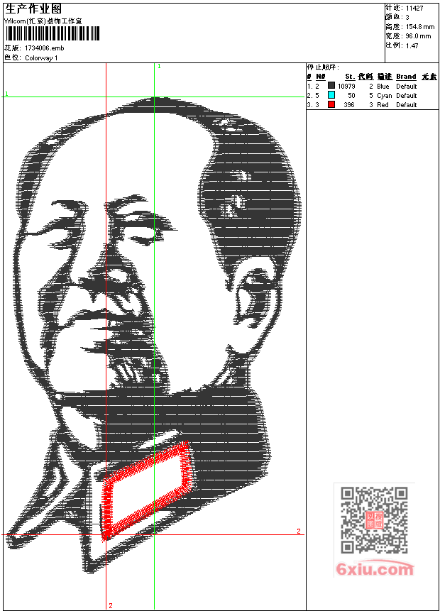 人物 毛主席工艺精品 点此上传花版兑乐绣币/现金 emb花版参数: 大小:72.50 KB / 尺寸:96*155[毫米] / 针数:11427针 / 线色:3 / 格式:emb / 版本:9 版带文件需绣花软件方可打开,可配色打印导出各种格式或直接上机绣。如无绣花软件可下载1:1模拟效果图。 PNG图片信息:大小:0.2 (MB) /图宽*高:364x586(像素) 上传作者( 雷人*** ) 获得乐绣币:30个 emb下载 1:1图下载 关闭 相似花型推荐: 凤凰 工艺精品 鹤 双鹤工艺精品 双龙贺喜工艺精品 鸟 靓花 四季花鸟工艺精品 美女 四美图-杨贵妃工艺精品 景 屋 唐伯虎名画-吴门工艺精品 字 天道酬勤工艺精品 人物 田园小孩工艺精品 字 喜结良缘工艺精品 鸳鸯戏水工艺精品 字 招财进宝工艺精品 字 招财进宝工艺精品 人物 和尚 知了童真工艺精品 鸟 竹秋鸟工艺精品 字 祝福工艺精品 上一个花样:字画 毛泽东书法工艺精品 下一个花样:凤凰 工艺精品