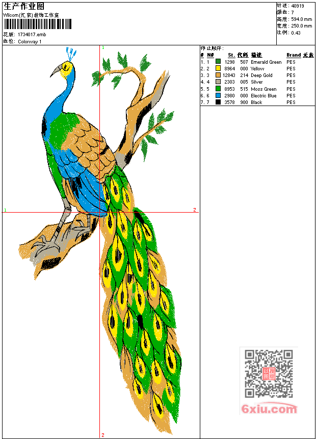 孔雀工艺精品 点此上传花版兑乐绣币/现金 emb花版参数: 大小:160.50 KB / 尺寸:250*594[毫米] / 针数:40919针 / 线色:7 / 格式:emb / 版本:9 版带文件需绣花软件方可打开,可配色打印导出各种格式或直接上机绣。如无绣花软件可下载1:1模拟效果图。 PNG图片信息:大小:2.0 (MB) /图宽*高:946x2247(像素) 上传作者( 雷人*** ) 获得乐绣币:30个 emb下载 1:1图下载 关闭 相似花型推荐: 狼工艺精品 松 两只蝴蝶工艺精品 龙工艺精品 龙凤呈祥工艺精品 龙凤双喜工艺精品 龙年飞龙工艺精品 龙与虎斗工艺精品 马到功成工艺精品 马拉人工艺精品 字画 毛泽东书法工艺精品 人物 毛主席工艺精品 凤凰 工艺精品 鹤 双鹤工艺精品 双龙贺喜工艺精品 鸟 靓花 四季花鸟工艺精品 上一个花样:马 骏马-母与工艺精品 下一个花样:狼工艺精品