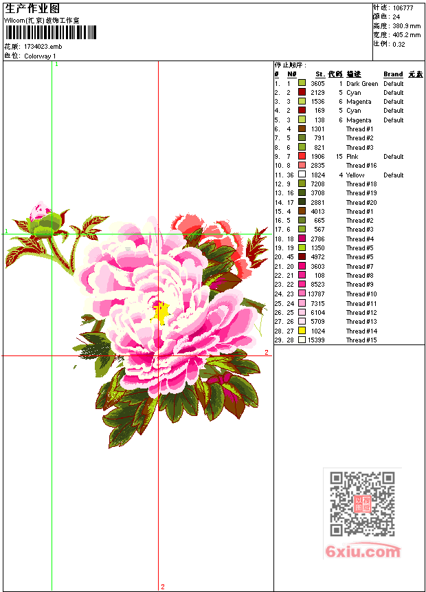 牡丹花 靓花 大花工艺精品 点此上传花版兑乐绣币/现金 emb花版参数: 大小:569.00 KB / 尺寸:405*381[毫米] / 针数:106777针 / 线色:24 / 格式:emb / 版本:9 版带文件需绣花软件方可打开,可配色打印导出各种格式或直接上机绣。如无绣花软件可下载1:1模拟效果图。 PNG图片信息:大小:2.7 (MB) /图宽*高:1533x1441(像素) 上传作者( 雷人*** ) 获得乐绣币:30个 emb下载 1:1图下载 关闭 相似花型推荐: 鹰 大展宏图工艺精品 龙 单龙戏珠 孔雀 花开富贵 牡丹花 碟恋花工艺精品 人物 法老工艺精品 马 骏马-母与工艺精品 孔雀工艺精品 狼工艺精品 松 两只蝴蝶工艺精品 龙工艺精品 龙凤呈祥工艺精品 龙凤双喜工艺精品 龙年飞龙工艺精品 龙与虎斗工艺精品 马到功成工艺精品 马拉人工艺精品 上一个花样:景中堂画 春意盎然工艺精品 下一个花样:鹰 大展宏图工艺精品