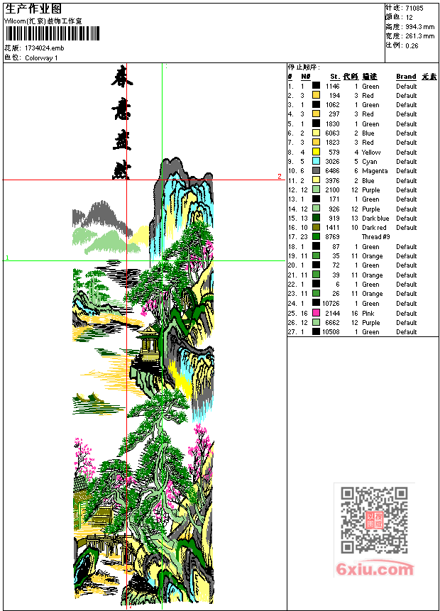 景中堂画 春意盎然工艺精品 点此上传花版兑乐绣币/现金 emb花版参数: 大小:482.00 KB / 尺寸:261*994[毫米] / 针数:71085针 / 线色:12 / 格式:emb / 版本:9 版带文件需绣花软件方可打开,可配色打印导出各种格式或直接上机绣。如无绣花软件可下载1:1模拟效果图。 PNG图片信息:大小:3.4 (MB) /图宽*高:989x3761(像素) 上传作者( 雷人*** ) 获得乐绣币:30个 emb下载 1:1图下载 关闭 相似花型推荐: 牡丹花 靓花 大花工艺精品 鹰 大展宏图工艺精品 龙 单龙戏珠 孔雀 花开富贵 牡丹花 碟恋花工艺精品 人物 法老工艺精品 马 骏马-母与工艺精品 孔雀工艺精品 狼工艺精品 松 两只蝴蝶工艺精品 龙工艺精品 龙凤呈祥工艺精品 龙凤双喜工艺精品 龙年飞龙工艺精品 龙与虎斗工艺精品 马到功成工艺精品 上一个花样:竹子 春夏秋冬-工艺精品 下一个花样:牡丹花 靓花 大花工艺精品
