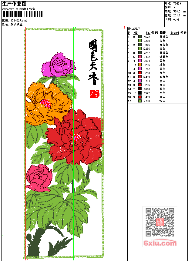 牡丹花 春夏秋冬-工艺精品 点此上传花版兑乐绣币/现金 emb花版参数: 大小:281.50 KB / 尺寸:202*578[毫米] / 针数:77439针 / 线色:9 / 格式:emb / 版本:9 版带文件需绣花软件方可打开,可配色打印导出各种格式或直接上机绣。如无绣花软件可下载1:1模拟效果图。 PNG图片信息:大小:2.4 (MB) /图宽*高:764x2189(像素) 上传作者( 雷人*** ) 获得乐绣币:30个 emb下载 1:1图下载 关闭 相似花型推荐: 鸳鸯 春夏秋冬-夏工艺精品 竹子 春夏秋冬-工艺精品 景中堂画 春意盎然工艺精品 牡丹花 靓花 大花工艺精品 鹰 大展宏图工艺精品 龙 单龙戏珠 孔雀 花开富贵 牡丹花 碟恋花工艺精品 人物 法老工艺精品 马 骏马-母与工艺精品 孔雀工艺精品 狼工艺精品 松 两只蝴蝶工艺精品 龙工艺精品 龙凤呈祥工艺精品 龙凤双喜工艺精品 上一个花样:鱼 垂钓工艺精品 下一个花样:鸳鸯 春夏秋冬-夏工艺精品