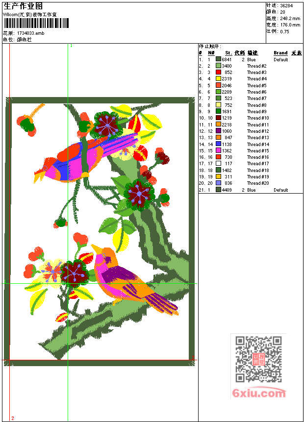 鸟 报喜鸟工艺精品 点此上传花版兑乐绣币/现金 emb花版参数: 大小:159.00 KB / 尺寸:176*248[毫米] / 针数:36284针 / 线色:20 / 格式:emb / 版本:9 版带文件需绣花软件方可打开,可配色打印导出各种格式或直接上机绣。如无绣花软件可下载1:1模拟效果图。 PNG图片信息:大小:0.7 (MB) /图宽*高:666x939(像素) 上传作者( 雷人*** ) 获得乐绣币:30个 emb下载 1:1图下载 关闭 相似花型推荐: 熊 北极熊工艺精品 人物 财神到 工艺精品 财神工艺精品 生意兴隆 景 长城 沧海腾龙乱针绣工艺精品 锦绣山河 鱼 垂钓工艺精品 牡丹花 春夏秋冬-工艺精品 鸳鸯 春夏秋冬-夏工艺精品 竹子 春夏秋冬-工艺精品 景中堂画 春意盎然工艺精品 牡丹花 靓花 大花工艺精品 鹰 大展宏图工艺精品 龙 单龙戏珠 孔雀 花开富贵 牡丹花 碟恋花工艺精品 人物 法老工艺精品 马 骏马-母与工艺精品 上一个花样:梅花 报春图工艺精品 下一个花样:熊 北极熊工艺精品