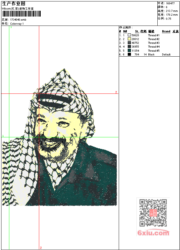 人物 阿拉法特乱针绣工艺精品 点此上传花版兑乐绣币/现金 emb花版参数: 大小:628.50 KB / 尺寸:178*214[毫米] / 针数:168477针 / 线色:6 / 格式:emb / 版本:7 版带文件需绣花软件方可打开,可配色打印导出各种格式或直接上机绣。如无绣花软件可下载1:1模拟效果图。 PNG图片信息:大小:1.0 (MB) /图宽*高:675x809(像素) 上传作者( 雷人*** ) 获得乐绣币:30个 emb下载 1:1图下载 关闭 相似花型推荐: 鹤 爱仙鹤工艺精品 梅 傲梅工艺精品 福 百福图工艺精品 字 百寿图工艺精品 人物 百子图工艺精品 梅花 报春图工艺精品 鸟 报喜鸟工艺精品 熊 北极熊工艺精品 人物 财神到 工艺精品 财神工艺精品 生意兴隆 景 长城 沧海腾龙乱针绣工艺精品 锦绣山河 鱼 垂钓工艺精品 牡丹花 春夏秋冬-工艺精品 鸳鸯 春夏秋冬-夏工艺精品 竹子 春夏秋冬-工艺精品 上一个花样:字 双喜 囍 工艺精品 百年好合 永结同心 下一个花样:鹤 爱仙鹤工艺精品