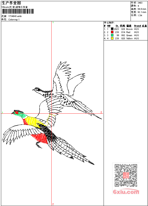鸟 比翼鸟工艺精品 点此上传花版兑乐绣币/现金 emb花版参数: 大小:39.00 KB / 尺寸:92*95[毫米] / 针数:3403针 / 线色:4 / 格式:emb / 版本:9 版带文件需绣花软件方可打开,可配色打印导出各种格式或直接上机绣。如无绣花软件可下载1:1模拟效果图。 PNG图片信息:大小:0.1 (MB) /图宽*高:349x359(像素) 上传作者( 雷人*** ) 获得乐绣币:30个 emb下载 1:1图下载 关闭 相似花型推荐: 人物 童话 矮人巫师工艺精品 字 双喜 囍 工艺精品 百年好合 永结同心 人物 阿拉法特乱针绣工艺精品 鹤 爱仙鹤工艺精品 梅 傲梅工艺精品 福 百福图工艺精品 字 百寿图工艺精品 人物 百子图工艺精品 梅花 报春图工艺精品 鸟 报喜鸟工艺精品 熊 北极熊工艺精品 人物 财神到 工艺精品 财神工艺精品 生意兴隆 景 长城 沧海腾龙乱针绣工艺精品 锦绣山河 鱼 垂钓工艺精品 上一个花样:人物 财神到 工艺精品 下一个花样:人物 童话 矮人巫师工艺精品