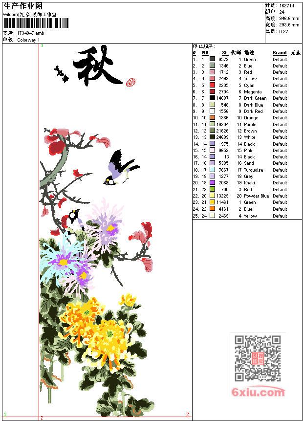 菊花 春夏秋冬秋工艺精品 点此上传花版兑乐绣币/现金 emb花版参数: 大小:969.00 KB / 尺寸:294*947[毫米] / 针数:162714针 / 线色:24 / 格式:emb / 版本:9 版带文件需绣花软件方可打开,可配色打印导出各种格式或直接上机绣。如无绣花软件可下载1:1模拟效果图。 PNG图片信息:大小:3.7 (MB) /图宽*高:1111x3581(像素) 上传作者( 雷人*** ) 获得乐绣币:30个 emb下载 1:1图下载 关闭 相似花型推荐: 字画 人物 成功工艺精品 景 屋 城堡工艺精品 人物 财神到 工艺精品 鸟 比翼鸟工艺精品 人物 童话 矮人巫师工艺精品 字 双喜 囍 工艺精品 百年好合 永结同心 人物 阿拉法特乱针绣工艺精品 鹤 爱仙鹤工艺精品 梅 傲梅工艺精品 福 百福图工艺精品 字 百寿图工艺精品 人物 百子图工艺精品 梅花 报春图工艺精品 鸟 报喜鸟工艺精品 熊 北极熊工艺精品 上一个花样:荷花 春夏秋冬夏工艺精品 下一个花样:字画 人物 成功工艺精品