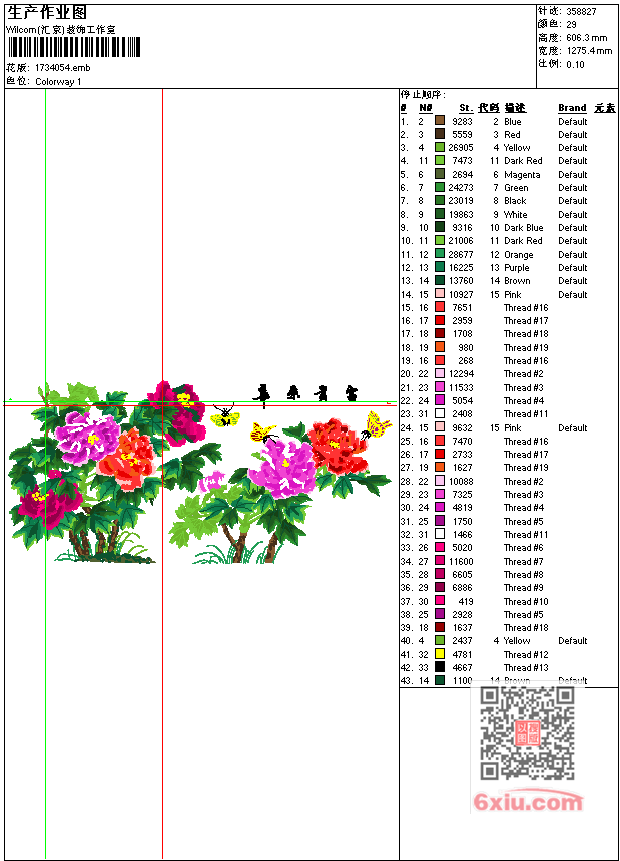 牡丹花 富贵荣华工艺精品 点此上传花版兑乐绣币/现金 emb花版参数: 大小:1.39 MB / 尺寸:1275*606[毫米] / 针数:358827针 / 线色:29 / 格式:emb / 版本:7 版带文件需绣花软件方可打开,可配色打印导出各种格式或直接上机绣。如无绣花软件可下载1:1模拟效果图。 PNG图片信息:大小:13.2 (MB) /图宽*高:4825x2294(像素) 上传作者( 雷人*** ) 获得乐绣币:30个 emb下载 1:1图下载 关闭 相似花型推荐: 福工艺精品 粉底牡丹花瓶乱针绣工艺精品 鹰 大展宏图工艺精品 景 大山风景乱针绣工艺精品 美女 达瓦卓玛乱针绣工艺精品 荷花 春夏秋冬夏工艺精品 菊花 春夏秋冬秋工艺精品 字画 人物 成功工艺精品 景 屋 城堡工艺精品 人物 财神到 工艺精品 鸟 比翼鸟工艺精品 人物 童话 矮人巫师工艺精品 字 双喜 囍 工艺精品 百年好合 永结同心 人物 阿拉法特乱针绣工艺精品 鹤 爱仙鹤工艺精品 上一个花样:景 树 赶集乱针绣工艺精品 下一个花样:福工艺精品