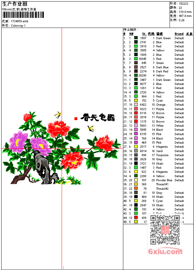 牡丹花 国色天香工艺精品 点此上传花版兑乐绣币/现金 emb花版参数: 大小:772.00 KB / 尺寸:498*310[毫米] / 针数:152223针 / 线色:22 / 格式:emb / 版本:9 版带文件需绣花软件方可打开,可配色打印导出各种格式或直接上机绣。如无绣花软件可下载1:1模拟效果图。 PNG图片信息:大小:2.4 (MB) /图宽*高:1883x1173(像素) 上传作者( 雷人*** ) 获得乐绣币:30个 emb下载 1:1图下载 关闭 相似花型推荐: 鸟 国画花鸟工艺精品 神 人物 观音工艺精品 字 恭喜发财工艺精品 景 树 赶集乱针绣工艺精品 牡丹花 富贵荣华工艺精品 福工艺精品 粉底牡丹花瓶乱针绣工艺精品 鹰 大展宏图工艺精品 景 大山风景乱针绣工艺精品 美女 达瓦卓玛乱针绣工艺精品 荷花 春夏秋冬夏工艺精品 菊花 春夏秋冬秋工艺精品 字画 人物 成功工艺精品 景 屋 城堡工艺精品 人物 财神到 工艺精品 上一个花样:虎-老虎工艺精品 下一个花样:鸟 国画花鸟工艺精品