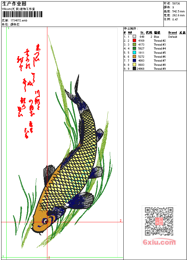 鲤鱼工艺精品 点此上传花版兑乐绣币/现金 emb花版参数: 大小:261.00 KB / 尺寸:263*543[毫米] / 针数:59736针 / 线色:9 / 格式:emb / 版本:9 版带文件需绣花软件方可打开,可配色打印导出各种格式或直接上机绣。如无绣花软件可下载1:1模拟效果图。 PNG图片信息:大小:1.2 (MB) /图宽*高:994x2052(像素) 上传作者( 雷人*** ) 获得乐绣币:30个 emb下载 1:1图下载 关闭 相似花型推荐: 人物 雷锋工艺精品 老鹰工艺精品 孔雀开屏工艺精品 人物 敬爱的周总理乱针绣工艺精品 鸟 靓花 锦绣前程工艺精品 鸡鸣发财工艺精品 树 黄金大道乱针绣工艺精品 花开富贵工艺精品 牡丹花 鸟 花好月圆工艺精品 花工艺精品 虎-老虎工艺精品 牡丹花 国色天香工艺精品 鸟 国画花鸟工艺精品 神 人物 观音工艺精品 字 恭喜发财工艺精品 上一个花样:龙风呈祥工艺精品 下一个花样:人物 雷锋工艺精品