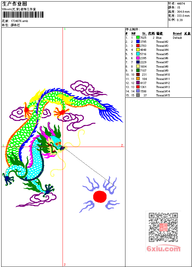 龙吐珠工艺精品 点此上传花版兑乐绣币/现金 emb花版参数: 大小:246.00 KB / 尺寸:333*365[毫米] / 针数:44974针 / 线色:15 / 格式:emb / 版本:9 版带文件需绣花软件方可打开,可配色打印导出各种格式或直接上机绣。如无绣花软件可下载1:1模拟效果图。 PNG图片信息:大小:1.1 (MB) /图宽*高:1260x1380(像素) 上传作者( 雷人*** ) 获得乐绣币:30个 emb下载 1:1图下载 关闭 相似花型推荐: 龙凤喜缘乱针绣工艺精品 龙凤吉祥工艺精品 龙风呈祥工艺精品 鲤鱼工艺精品 人物 雷锋工艺精品 老鹰工艺精品 孔雀开屏工艺精品 人物 敬爱的周总理乱针绣工艺精品 鸟 靓花 锦绣前程工艺精品 鸡鸣发财工艺精品 树 黄金大道乱针绣工艺精品 花开富贵工艺精品 牡丹花 鸟 花好月圆工艺精品 花工艺精品 虎-老虎工艺精品 上一个花样:景 芦苇乱针绣工艺精品 下一个花样:龙凤喜缘乱针绣工艺精品