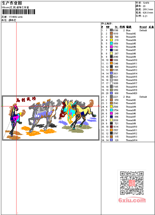 马到成功工艺精品 点此上传花版兑乐绣币/现金 emb花版参数: 大小:447.50 KB / 尺寸:626*289[毫米] / 针数:72479针 / 线色:20 / 格式:emb / 版本:9 版带文件需绣花软件方可打开,可配色打印导出各种格式或直接上机绣。如无绣花软件可下载1:1模拟效果图。 PNG图片信息:大小:2.4 (MB) /图宽*高:2368x1095(像素) 上传作者( 雷人*** ) 获得乐绣币:30个 emb下载 1:1图下载 关闭 相似花型推荐: 人物 乱针长发美女沉思图乱针绣工艺精品 人物 吕洞宾 精品 景 鲁迅故乡乱针绣工艺精品 江南水乡 景 芦芽山乱针绣工艺精品 景 芦苇乱针绣工艺精品 龙吐珠工艺精品 龙凤喜缘乱针绣工艺精品 龙凤吉祥工艺精品 龙风呈祥工艺精品 鲤鱼工艺精品 人物 雷锋工艺精品 老鹰工艺精品 孔雀开屏工艺精品 人物 敬爱的周总理乱针绣工艺精品 鸟 靓花 锦绣前程工艺精品 上一个花样:满园春鸟 工艺精品 下一个花样:人物 乱针长发美女沉思图乱针绣工艺精品