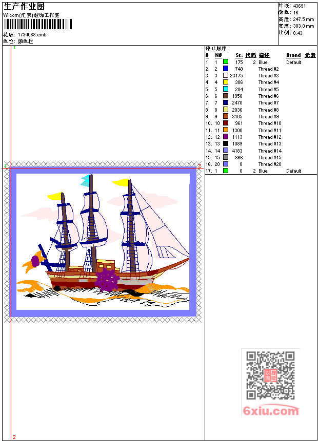船 美丽的船工艺精品 点此上传花版兑乐绣币/现金 emb花版参数: 大小:109.00 KB / 尺寸:303*248[毫米] / 针数:43691针 / 线色:16 / 格式:emb / 版本:9 版带文件需绣花软件方可打开,可配色打印导出各种格式或直接上机绣。如无绣花软件可下载1:1模拟效果图。 PNG图片信息:大小:1.2 (MB) /图宽*高:1147x937(像素) 上传作者( 雷人*** ) 获得乐绣币:30个 emb下载 1:1图下载 关闭 相似花型推荐: 梅兰竹菊-梅工艺精品 梅兰竹菊-兰工艺精品 梅兰竹菊-菊工艺精品 猫儿与小鸡乱针绣工艺精品 满园春鸟 工艺精品 马到成功工艺精品 人物 乱针长发美女沉思图乱针绣工艺精品 人物 吕洞宾 精品 景 鲁迅故乡乱针绣工艺精品 江南水乡 景 芦芽山乱针绣工艺精品 景 芦苇乱针绣工艺精品 龙吐珠工艺精品 龙凤喜缘乱针绣工艺精品 龙凤吉祥工艺精品 龙风呈祥工艺精品 上一个花样:美人鱼平绣亮片工艺精品 下一个花样:梅兰竹菊-梅工艺精品