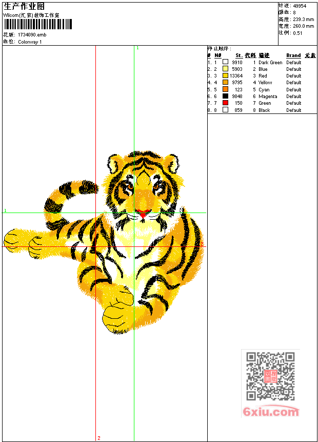 虎 老虎 猛虎工艺精品 点此上传花版兑乐绣币/现金 emb花版参数: 大小:187.00 KB / 尺寸:260*239[毫米] / 针数:49954针 / 线色:8 / 格式:emb / 版本:7 版带文件需绣花软件方可打开,可配色打印导出各种格式或直接上机绣。如无绣花软件可下载1:1模拟效果图。 PNG图片信息:大小:1.2 (MB) /图宽*高:984x906(像素) 上传作者( 雷人*** ) 获得乐绣币:30个 emb下载 1:1图下载 关闭 相似花型推荐: 美人鱼平绣亮片工艺精品 船 美丽的船工艺精品 梅兰竹菊-梅工艺精品 梅兰竹菊-兰工艺精品 梅兰竹菊-菊工艺精品 猫儿与小鸡乱针绣工艺精品 满园春鸟 工艺精品 马到成功工艺精品 人物 乱针长发美女沉思图乱针绣工艺精品 人物 吕洞宾 精品 景 鲁迅故乡乱针绣工艺精品 江南水乡 景 芦芽山乱针绣工艺精品 景 芦苇乱针绣工艺精品 龙吐珠工艺精品 龙凤喜缘乱针绣工艺精品 上一个花样:猛虎下山工艺精品 下一个花样:美人鱼平绣亮片工艺精品