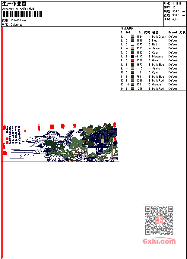 景 南山之麓工艺精品 点此上传花版兑乐绣币/现金 emb花版参数: 大小:687.00 KB / 尺寸:987*334[毫米] / 针数:141989针 / 线色:10 / 格式:emb / 版本:8 版带文件需绣花软件方可打开,可配色打印导出各种格式或直接上机绣。如无绣花软件可下载1:1模拟效果图。 PNG图片信息:大小:3.8 (MB) /图宽*高:3732x1264(像素) 上传作者( 雷人*** ) 获得乐绣币:30个 emb下载 1:1图下载 关闭 相似花型推荐: 人物 马 拿破仑乱针绣工艺精品 风景 牧归乱针绣工艺精品 牡丹花工艺精品 牡丹工艺精品 水墨竹兰石工艺精品 名狗宠物集工艺精品 米老鼠十字绣工艺精品 钟 景 梦幻秋色乱针绣工艺精品 树林 黄金满地 猛虎下山工艺精品 虎 老虎 猛虎工艺精品 美人鱼平绣亮片工艺精品 船 美丽的船工艺精品 梅兰竹菊-梅工艺精品 梅兰竹菊-兰工艺精品 梅兰竹菊-菊工艺精品 上一个花样:鱼 鲤鱼 年年有余工艺精品 牡丹花 下一个花样:人物 马 拿破仑乱针绣工艺精品