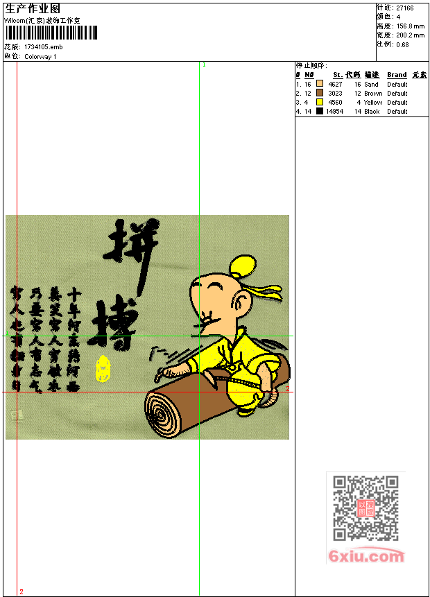 字 人物 拼搏工艺精品 点此上传花版兑乐绣币/现金 emb花版参数: 大小:445.50 KB / 尺寸:200*157[毫米] / 针数:27166针 / 线色:4 / 格式:emb / 版本:7 版带文件需绣花软件方可打开,可配色打印导出各种格式或直接上机绣。如无绣花软件可下载1:1模拟效果图。 PNG图片信息:大小:0.4 (MB) /图宽*高:758x594(像素) 上传作者( 雷人*** ) 获得乐绣币:30个 emb下载 1:1图下载 关闭 相似花型推荐: 鸟 鸟笼 宁听花鸟工艺精品 字画 十字绣 宁静致远工艺精品 鸟语花香工艺精品 鱼 鲤鱼 年年有余工艺精品 牡丹花 景 南山之麓工艺精品 人物 马 拿破仑乱针绣工艺精品 风景 牧归乱针绣工艺精品 牡丹花工艺精品 牡丹工艺精品 水墨竹兰石工艺精品 名狗宠物集工艺精品 米老鼠十字绣工艺精品 钟 景 梦幻秋色乱针绣工艺精品 树林 黄金满地 猛虎下山工艺精品 虎 老虎 猛虎工艺精品 上一个花样:鹤 字 平安双鹤工艺精品 下一个花样:鸟 鸟笼 宁听花鸟工艺精品