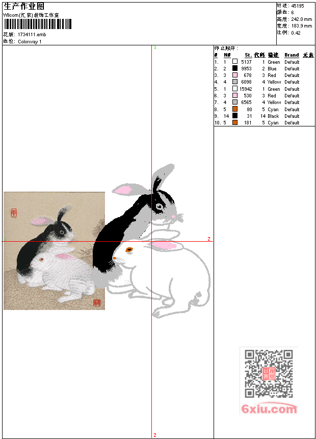 兔 十二生肖-兔子工艺精品 点此上传花版兑乐绣币/现金 emb花版参数: 大小:409.50 KB / 尺寸:184*242[毫米] / 针数:45195针 / 线色:6 / 格式:emb / 版本:9 版带文件需绣花软件方可打开,可配色打印导出各种格式或直接上机绣。如无绣花软件可下载1:1模拟效果图。 PNG图片信息:大小:0.8 (MB) /图宽*高:696x916(像素) 上传作者( 雷人*** ) 获得乐绣币:30个 emb下载 1:1图下载 关闭 相似花型推荐: 神气龙工艺精品 秋葵乱针绣工艺精品 鸟 青竹幽幽工艺精品 景 平湖秋月工艺精品 鹤 字 平安双鹤工艺精品 字 人物 拼搏工艺精品 鸟 鸟笼 宁听花鸟工艺精品 字画 十字绣 宁静致远工艺精品 鸟语花香工艺精品 鱼 鲤鱼 年年有余工艺精品 牡丹花 景 南山之麓工艺精品 人物 马 拿破仑乱针绣工艺精品 风景 牧归乱针绣工艺精品 牡丹花工艺精品 牡丹工艺精品 上一个花样:蛇 十二生肖工艺精品 下一个花样:神气龙工艺精品