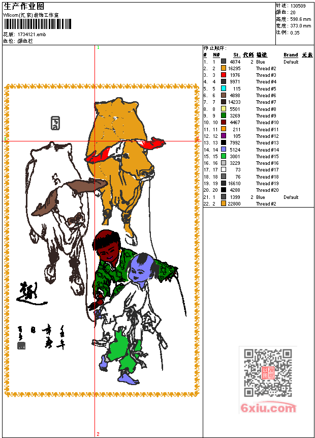 牛 放牛 童子戏祥牛工艺精品 点此上传花版兑乐绣币/现金 emb花版参数: 大小:408.00 KB / 尺寸:373*599[毫米] / 针数:130549针 / 线色:20 / 格式:emb / 版本:9 版带文件需绣花软件方可打开,可配色打印导出各种格式或直接上机绣。如无绣花软件可下载1:1模拟效果图。 PNG图片信息:大小:2.1 (MB) /图宽*高:1411x2265(像素) 上传作者( 雷人*** ) 获得乐绣币:30个 emb下载 1:1图下载 关闭 相似花型推荐: 唐伯虎名画-野人山工艺精品 竹松梅 岁寒三友工艺精品 景 苏州园林乱针绣工艺精品 神话 四神兽之玄武工艺精品 春夏秋冬 四季-春天工艺精品 双虎工艺精品 马到成功十字绣 工艺精品 十二生肖之龙工艺精品 蛇 十二生肖工艺精品 兔 十二生肖-兔子工艺精品 神气龙工艺精品 秋葵乱针绣工艺精品 鸟 青竹幽幽工艺精品 景 平湖秋月工艺精品 鹤 字 平安双鹤工艺精品 上一个花样:福 五福图工艺精品 下一个花样:唐伯虎名画-野人山工艺精品