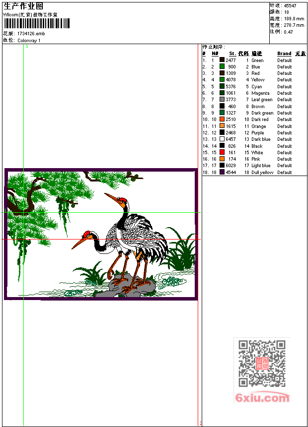 鹤 仙鹤工艺精品 点此上传花版兑乐绣币/现金 emb花版参数: 大小:204.50 KB / 尺寸:279*190[毫米] / 针数:45547针 / 线色:18 / 格式:emb / 版本:9 版带文件需绣花软件方可打开,可配色打印导出各种格式或直接上机绣。如无绣花软件可下载1:1模拟效果图。 PNG图片信息:大小:0.8 (MB) /图宽*高:1055x718(像素) 上传作者( 雷人*** ) 获得乐绣币:30个 emb下载 1:1图下载 关闭 相似花型推荐: 羊 喜羊羊工艺精品 喜上眉梢仿苏绣工艺精品 福 五福图工艺精品 牛 放牛 童子戏祥牛工艺精品 唐伯虎名画-野人山工艺精品 竹松梅 岁寒三友工艺精品 景 苏州园林乱针绣工艺精品 神话 四神兽之玄武工艺精品 春夏秋冬 四季-春天工艺精品 双虎工艺精品 马到成功十字绣 工艺精品 十二生肖之龙工艺精品 蛇 十二生肖工艺精品 兔 十二生肖-兔子工艺精品 神气龙工艺精品 上一个花样:鹤 仙鹤工艺精品 下一个花样:羊 喜羊羊工艺精品