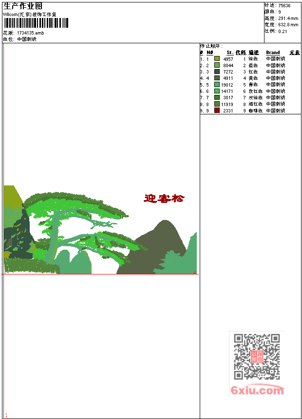 松 迎客松工艺精品 点此上传花版兑乐绣币/现金 emb花版参数: 大小:128.50 KB / 尺寸:633*291[毫米] / 针数:75636针 / 线色:9 / 格式:emb / 版本:9 版带文件需绣花软件方可打开,可配色打印导出各种格式或直接上机绣。如无绣花软件可下载1:1模拟效果图。 PNG图片信息:大小:2.6 (MB) /图宽*高:2394x1103(像素) 上传作者( 雷人*** ) 获得乐绣币:30个 emb下载 1:1图下载 关闭 相似花型推荐: 字画 毅力工艺精品 鸟 依偎工艺精品 马车 一马当先一路平安工艺精品 牡丹花 工艺精品 字 人物 笑工艺精品 鸟与花卉工艺精品 鹤 仙鹤工艺精品 鹤 仙鹤工艺精品 羊 喜羊羊工艺精品 喜上眉梢仿苏绣工艺精品 福 五福图工艺精品 牛 放牛 童子戏祥牛工艺精品 唐伯虎名画-野人山工艺精品 竹松梅 岁寒三友工艺精品 景 苏州园林乱针绣工艺精品 上一个花样:鱼乱针绣工艺精品 下一个花样:字画 毅力工艺精品