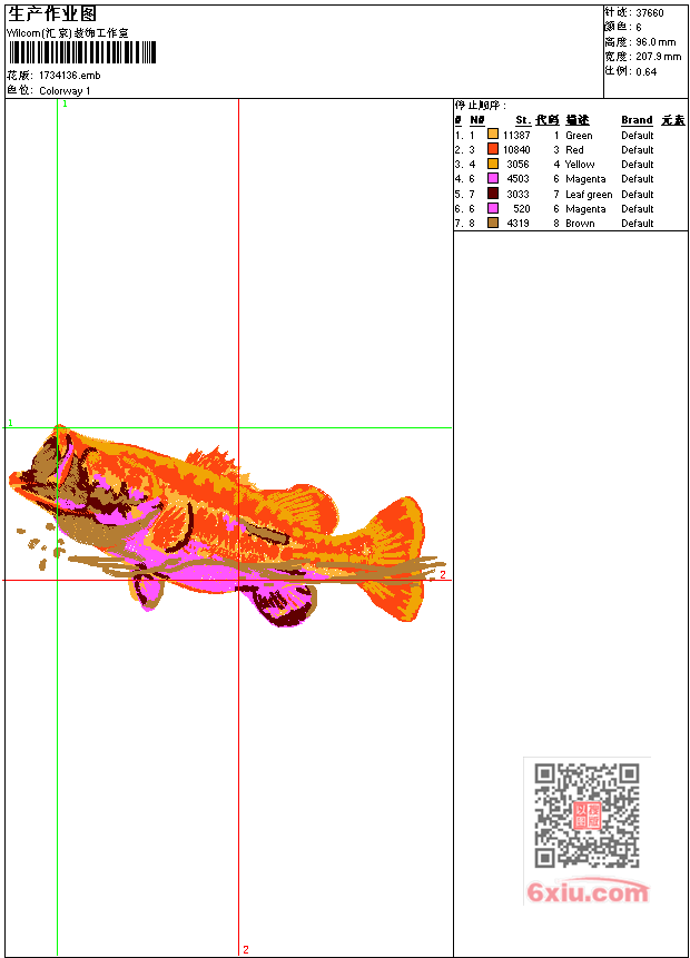 鱼乱针绣工艺精品 点此上传花版兑乐绣币/现金 emb花版参数: 大小:176.00 KB / 尺寸:208*96[毫米] / 针数:37660针 / 线色:6 / 格式:emb / 版本:9 版带文件需绣花软件方可打开,可配色打印导出各种格式或直接上机绣。如无绣花软件可下载1:1模拟效果图。 PNG图片信息:大小:0.4 (MB) /图宽*高:787x364(像素) 上传作者( 雷人*** ) 获得乐绣币:30个 emb下载 1:1图下载 关闭 相似花型推荐: 松 迎客松工艺精品 字画 毅力工艺精品 鸟 依偎工艺精品 马车 一马当先一路平安工艺精品 牡丹花 工艺精品 字 人物 笑工艺精品 鸟与花卉工艺精品 鹤 仙鹤工艺精品 鹤 仙鹤工艺精品 羊 喜羊羊工艺精品 喜上眉梢仿苏绣工艺精品 福 五福图工艺精品 牛 放牛 童子戏祥牛工艺精品 唐伯虎名画-野人山工艺精品 竹松梅 岁寒三友工艺精品 上一个花样:美女 玉女吹箫工艺精品 下一个花样:松 迎客松工艺精品