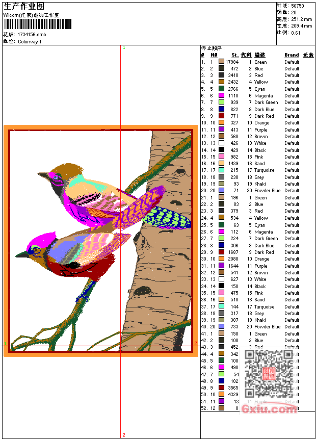 鸟 比翼鸟工艺精品 点此上传花版兑乐绣币/现金 emb花版参数: 大小:237.00 KB / 尺寸:209*251[毫米] / 针数:56750针 / 线色:20 / 格式:emb / 版本:9 版带文件需绣花软件方可打开,可配色打印导出各种格式或直接上机绣。如无绣花软件可下载1:1模拟效果图。 PNG图片信息:大小:1.0 (MB) /图宽*高:793x951(像素) 上传作者( 雷人*** ) 获得乐绣币:30个 emb下载 1:1图下载 关闭 相似花型推荐: 虎 奔跑的老虎工艺精品 车 宝马X5工艺精品 荷花 鸳鸯 百年好合工艺精品 鹤 百鹤图工艺精品 人物 白居易工艺精品 字 人物 把握人生工艺精品 字 爱拼才会赢工艺精品 龍工艺精品 龙 美人蛇 蟒蛇工艺精品 鸟 鹦鹉工艺精品 花朵 缂丝花工艺精品 美女 嫦娥奔月图工艺精品 人物 和尚 字 自在工艺精品 竹石图工艺精品 人物 神 钟汉离工艺精品 上一个花样:人物 布袋佛工艺精品 下一个花样:虎 奔跑的老虎工艺精品