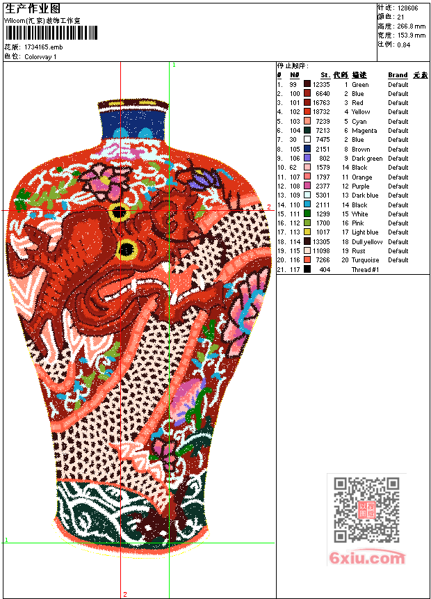 龙 花瓶 大龙瓶-苏绣乱针绣工艺精品 点此上传花版兑乐绣币/现金 emb花版参数: 大小:1.26 MB / 尺寸:154*267[毫米] / 针数:128606针 / 线色:21 / 格式:emb / 版本:9 版带文件需绣花软件方可打开,可配色打印导出各种格式或直接上机绣。如无绣花软件可下载1:1模拟效果图。 PNG图片信息:大小:1.0 (MB) /图宽*高:583x1010(像素) 上传作者( 雷人*** ) 获得乐绣币:30个 emb下载 1:1图下载 关闭 相似花型推荐: 景 中堂画 唐伯虎 春游图工艺精品 荷花 春夏秋冬-荷花工艺精品 树 春工艺精品 龙 赤龙工艺精品 人物 字 诚信为本工艺精品 人物 成龙-乱针绣工艺精品 人物 财神到-财运亨通工艺精品 人物 布袋佛工艺精品 鸟 比翼鸟工艺精品 虎 奔跑的老虎工艺精品 车 宝马X5工艺精品 荷花 鸳鸯 百年好合工艺精品 鹤 百鹤图工艺精品 人物 白居易工艺精品 字 人物 把握人生工艺精品 上一个花样:鹰 大展宏图工艺精品 下一个花样:景 中堂画 唐伯虎 春游图工艺精品