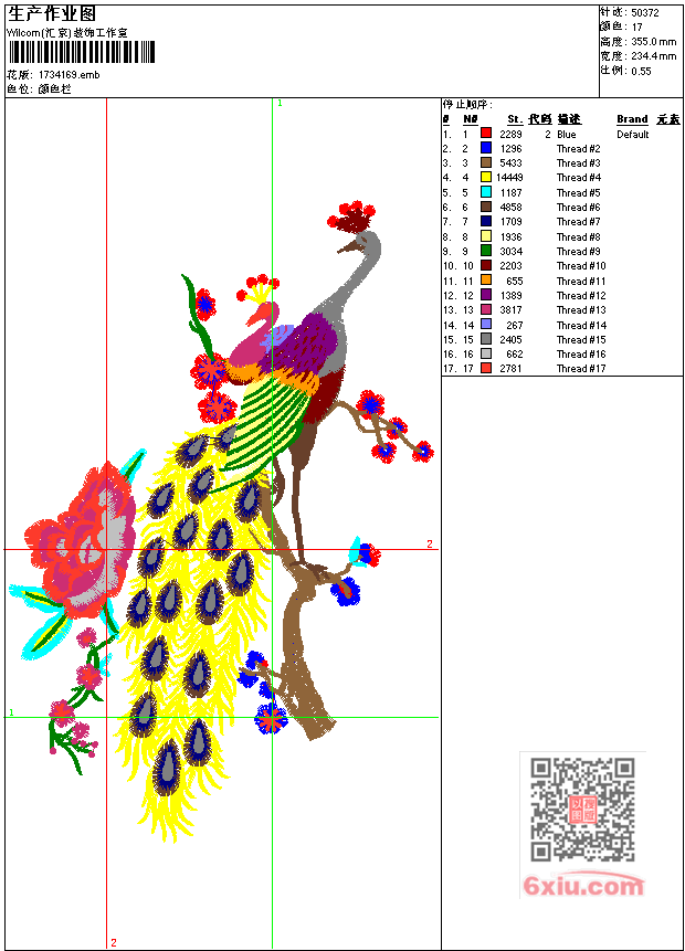 孔雀 工艺精品 点此上传花版兑乐绣币/现金 emb花版参数: 大小:258.50 KB / 尺寸:234*355[毫米] / 针数:50372针 / 线色:17 / 格式:emb / 版本:9 版带文件需绣花软件方可打开,可配色打印导出各种格式或直接上机绣。如无绣花软件可下载1:1模拟效果图。 PNG图片信息:大小:0.9 (MB) /图宽*高:887x1343(像素) 上传作者( 雷人*** ) 获得乐绣币:30个 emb下载 1:1图下载 关闭 相似花型推荐: 风景-草原 乱针绣工艺精品 鸟 冬腊梅工艺精品 鹰 大展宏图工艺精品 龙 花瓶 大龙瓶-苏绣乱针绣工艺精品 景 中堂画 唐伯虎 春游图工艺精品 荷花 春夏秋冬-荷花工艺精品 树 春工艺精品 龙 赤龙工艺精品 人物 字 诚信为本工艺精品 人物 成龙-乱针绣工艺精品 人物 财神到-财运亨通工艺精品 人物 布袋佛工艺精品 鸟 比翼鸟工艺精品 虎 奔跑的老虎工艺精品 车 宝马X5工艺精品 上一个花样:孔雀 富贵祯祥工艺精品 下一个花样:风景-草原 乱针绣工艺精品
