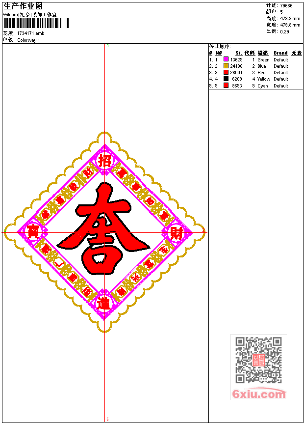 字 大吉大利 恭喜发财工艺精品 点此上传花版兑乐绣币/现金 emb花版参数: 大小:180.00 KB / 尺寸:480*479[毫米] / 针数:79686针 / 线色:5 / 格式:emb / 版本:9 版带文件需绣花软件方可打开,可配色打印导出各种格式或直接上机绣。如无绣花软件可下载1:1模拟效果图。 PNG图片信息:大小:1.8 (MB) /图宽*高:1815x1812(像素) 上传作者( 雷人*** ) 获得乐绣币:30个 emb下载 1:1图下载 关闭 相似花型推荐: 孔雀 富贵祯祥工艺精品 孔雀 工艺精品 风景-草原 乱针绣工艺精品 鸟 冬腊梅工艺精品 鹰 大展宏图工艺精品 龙 花瓶 大龙瓶-苏绣乱针绣工艺精品 景 中堂画 唐伯虎 春游图工艺精品 荷花 春夏秋冬-荷花工艺精品 树 春工艺精品 龙 赤龙工艺精品 人物 字 诚信为本工艺精品 人物 成龙-乱针绣工艺精品 人物 财神到-财运亨通工艺精品 人物 布袋佛工艺精品 鸟 比翼鸟工艺精品 上一个花样:花朵 贡菊工艺精品 下一个花样:孔雀 富贵祯祥工艺精品