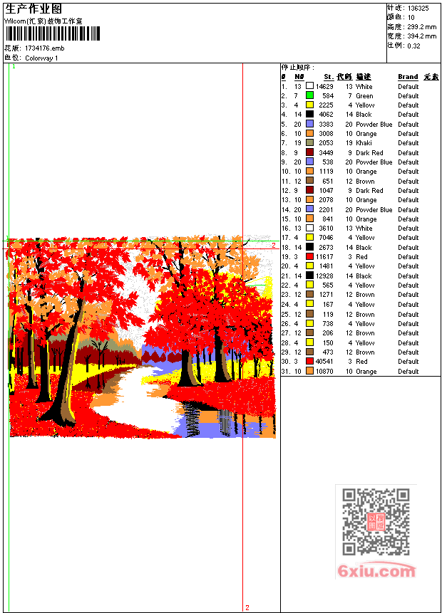 树 黄金满地 红枫满绣工艺精品 点此上传花版兑乐绣币/现金 emb花版参数: 大小:554.00 KB / 尺寸:394*299[毫米] / 针数:136325针 / 线色:10 / 格式:emb / 版本:9 版带文件需绣花软件方可打开,可配色打印导出各种格式或直接上机绣。如无绣花软件可下载1:1模拟效果图。 PNG图片信息:大小:3.6 (MB) /图宽*高:1492x1132(像素) 上传作者( 雷人*** ) 获得乐绣币:30个 emb下载 1:1图下载 关闭 相似花型推荐: 鹤与竹工艺精品 人物 神 如来 观音普照工艺精品 人物 古代美女踏雪图工艺精品 花朵 贡菊工艺精品 字 大吉大利 恭喜发财工艺精品 孔雀 富贵祯祥工艺精品 孔雀 工艺精品 风景-草原 乱针绣工艺精品 鸟 冬腊梅工艺精品 鹰 大展宏图工艺精品 龙 花瓶 大龙瓶-苏绣乱针绣工艺精品 景 中堂画 唐伯虎 春游图工艺精品 荷花 春夏秋冬-荷花工艺精品 树 春工艺精品 龙 赤龙工艺精品 上一个花样:虎工艺精品 下一个花样:鹤与竹工艺精品