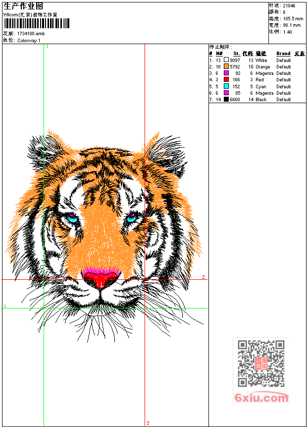 虎头-乱针绣工艺精品 点此上传花版兑乐绣币/现金 emb花版参数: 大小:79.50 KB / 尺寸:98*106[毫米] / 针数:21046针 / 线色:6 / 格式:emb / 版本:9 版带文件需绣花软件方可打开,可配色打印导出各种格式或直接上机绣。如无绣花软件可下载1:1模拟效果图。 PNG图片信息:大小:0.3 (MB) /图宽*高:372x400(像素) 上传作者( 雷人*** ) 获得乐绣币:30个 emb下载 1:1图下载 关闭 相似花型推荐: 虎工艺精品 树 黄金满地 红枫满绣工艺精品 鹤与竹工艺精品 人物 神 如来 观音普照工艺精品 人物 古代美女踏雪图工艺精品 花朵 贡菊工艺精品 字 大吉大利 恭喜发财工艺精品 孔雀 富贵祯祥工艺精品 孔雀 工艺精品 风景-草原 乱针绣工艺精品 鸟 冬腊梅工艺精品 鹰 大展宏图工艺精品 龙 花瓶 大龙瓶-苏绣乱针绣工艺精品 景 中堂画 唐伯虎 春游图工艺精品 荷花 春夏秋冬-荷花工艺精品 上一个花样:虎啸图工艺精品 下一个花样:虎工艺精品