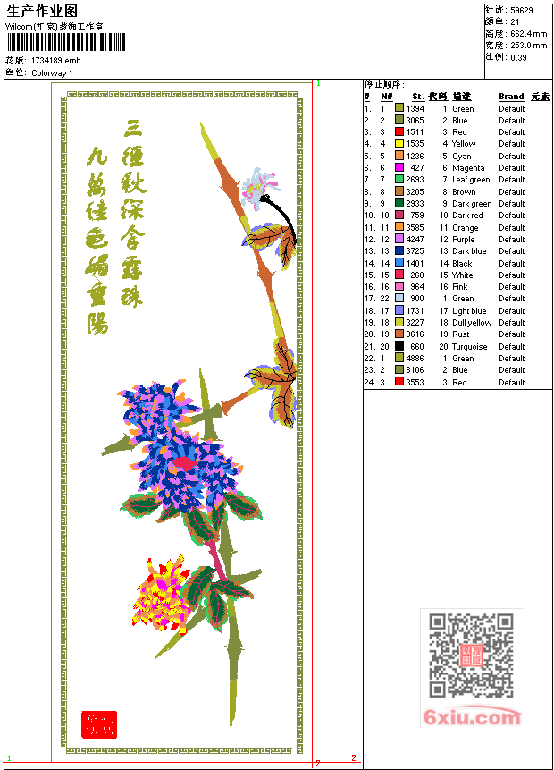 梅兰竹菊-菊花工艺精品 点此上传花版兑乐绣币/现金 emb花版参数: 大小:364.50 KB / 尺寸:253*662[毫米] / 针数:59629针 / 线色:21 / 格式:emb / 版本:9 版带文件需绣花软件方可打开,可配色打印导出各种格式或直接上机绣。如无绣花软件可下载1:1模拟效果图。 PNG图片信息:大小:1.3 (MB) /图宽*高:957x2506(像素) 上传作者( 雷人*** ) 获得乐绣币:30个 emb下载 1:1图下载 关闭 相似花型推荐: 玫瑰花瓶-乱针绣工艺精品 人物 毛主席工艺精品 字 毛泽东清平乐六盘山工艺精品 马到成功工艺精品 马到成功工艺精品 绿凤凰工艺精品 鸟 湖 芦苇深处苇海精灵工艺精品 虎啸图工艺精品 虎头-乱针绣工艺精品 虎工艺精品 树 黄金满地 红枫满绣工艺精品 鹤与竹工艺精品 人物 神 如来 观音普照工艺精品 人物 古代美女踏雪图工艺精品 花朵 贡菊工艺精品 上一个花样:梅竹工艺精品 下一个花样:玫瑰花瓶-乱针绣工艺精品