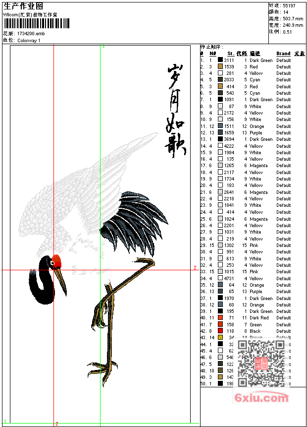 鹤 三屏鹤工艺精品 点此上传花版兑乐绣币/现金 emb花版参数: 大小:398.50 KB / 尺寸:241*504[毫米] / 针数:55189针 / 线色:14 / 格式:emb / 版本:9 版带文件需绣花软件方可打开,可配色打印导出各种格式或直接上机绣。如无绣花软件可下载1:1模拟效果图。 PNG图片信息:大小:0.9 (MB) /图宽*高:912x1906(像素) 上传作者( 雷人*** ) 获得乐绣币:30个 emb下载 1:1图下载 关闭 相似花型推荐: 牡丹花 荣华工艺精品 字画 忍工艺精品 秋果-乱针绣工艺精品 龙 排骨龙 字 宁静致远工艺精品 鱼 鲤鱼 年年有余工艺精品 牡丹花工艺精品 插针 牡丹工艺精品 名画-裸女泉-乱针绣工艺精品 梅竹工艺精品 梅兰竹菊-菊花工艺精品 玫瑰花瓶-乱针绣工艺精品 人物 毛主席工艺精品 字 毛泽东清平乐六盘山工艺精品 马到成功工艺精品 上一个花样:鸟 山雀山茶花图工艺精品 下一个花样:牡丹花 荣华工艺精品