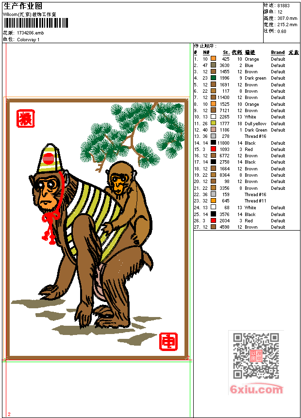 猴 十二生肖之猴工艺精品 点此上传花版兑乐绣币/现金 emb花版参数: 大小:322.00 KB / 尺寸:215*307[毫米] / 针数:81883针 / 线色:12 / 格式:emb / 版本:9 版带文件需绣花软件方可打开,可配色打印导出各种格式或直接上机绣。如无绣花软件可下载1:1模拟效果图。 PNG图片信息:大小:1.0 (MB) /图宽*高:815x1162(像素) 上传作者( 雷人*** ) 获得乐绣币:30个 emb下载 1:1图下载 关闭 相似花型推荐: 熊猫 竹 十宝图工艺精品 景 中堂 山水画工艺精品 鸟 山雀山茶花图工艺精品 鹤 三屏鹤工艺精品 牡丹花 荣华工艺精品 字画 忍工艺精品 秋果-乱针绣工艺精品 龙 排骨龙 字 宁静致远工艺精品 鱼 鲤鱼 年年有余工艺精品 牡丹花工艺精品 插针 牡丹工艺精品 名画-裸女泉-乱针绣工艺精品 梅竹工艺精品 梅兰竹菊-菊花工艺精品 上一个花样:十二生肖之虎工艺精品 下一个花样:熊猫 竹 十宝图工艺精品