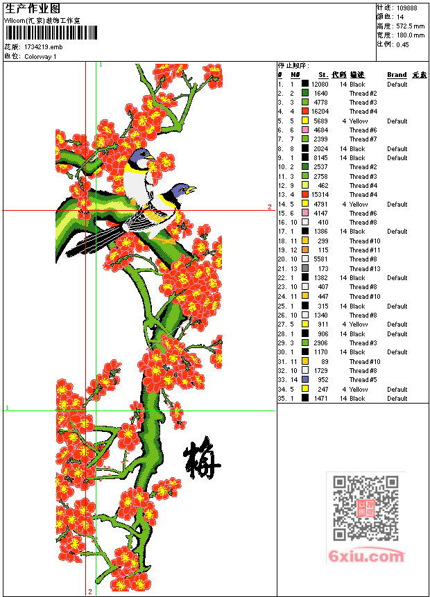 鸟 梅花 喜鹊登梅工艺精品 点此上传花版兑乐绣币/现金 emb花版参数: 大小:639.50 KB / 尺寸:180*573[毫米] / 针数:109888针 / 线色:14 / 格式:emb / 版本:9 版带文件需绣花软件方可打开,可配色打印导出各种格式或直接上机绣。如无绣花软件可下载1:1模拟效果图。 PNG图片信息:大小:1.6 (MB) /图宽*高:681x2166(像素) 上传作者( 雷人*** ) 获得乐绣币:30个 emb下载 1:1图下载 关闭 相似花型推荐: 水果 静物 桌面 喜气洋洋工艺精品 狗 我家的狗狗工艺精品 人物 望子成龙工艺精品 古典 传统故事 景 万里长城工艺精品 竹 牛 童牧牛工艺精品 放牛图 字画 天道酬勤工艺精品 人物 唐明皇工艺精品 松龄鹤寿工艺精品 龙 四神兽之青龙工艺精品 人物 四大美女-昭君工艺精品 字画 人物 时也运也工艺精品 十二生肖之虎工艺精品 猴 十二生肖之猴工艺精品 熊猫 竹 十宝图工艺精品 景 中堂 山水画工艺精品 上一个花样:鸟 梅花 喜上梅梢-乱针绣工艺精品 下一个花样:水果 静物 桌面 喜气洋洋工艺精品