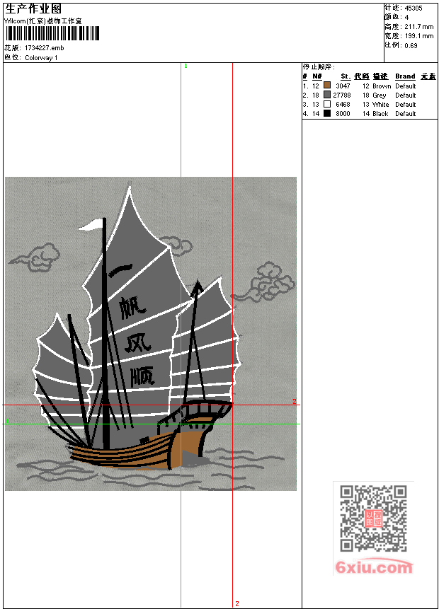 船 一帆风顺工艺精品 点此上传花版兑乐绣币/现金 emb花版参数: 大小:2.31 MB / 尺寸:199*212[毫米] / 针数:45305针 / 线色:4 / 格式:emb / 版本:9 版带文件需绣花软件方可打开,可配色打印导出各种格式或直接上机绣。如无绣花软件可下载1:1模拟效果图。 PNG图片信息:大小:0.4 (MB) /图宽*高:754x801(像素) 上传作者( 雷人*** ) 获得乐绣币:30个 emb下载 1:1图下载 关闭 相似花型推荐: 猫 洋气猫-乱针绣工艺精品 景 雪山行旅-唐伯虎名画工艺精品 中堂挂画 靓花 小野花 衣裤鞋通用 景 小桥流水工艺精品 人物 神仙 小观音工艺精品 鹤 松 仙鹤工艺精品 鸟 梅花 喜上梅梢-乱针绣工艺精品 鸟 梅花 喜鹊登梅工艺精品 水果 静物 桌面 喜气洋洋工艺精品 狗 我家的狗狗工艺精品 人物 望子成龙工艺精品 古典 传统故事 景 万里长城工艺精品 竹 牛 童牧牛工艺精品 放牛图 字画 天道酬勤工艺精品 人物 唐明皇工艺精品 上一个花样:船 一帆风顺工艺精品 下一个花样:猫 洋气猫-乱针绣工艺精品