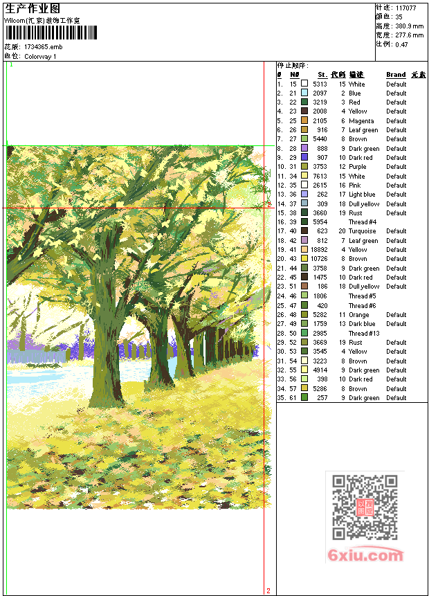 风景 树叶 秋天落叶工艺精品 点此上传花版兑乐绣币/现金 emb花版参数: 大小:1008.50 KB / 尺寸:278*381[毫米] / 针数:117077针 / 线色:35 / 格式:emb / 版本:7 版带文件需绣花软件方可打开,可配色打印导出各种格式或直接上机绣。如无绣花软件可下载1:1模拟效果图。 PNG图片信息:大小:3.5 (MB) /图宽*高:1051x1441(像素) 上传作者( 雷人*** ) 获得乐绣币:30个 emb下载 1:1图下载 关闭 相似花型推荐: 人物 头像 刘德华工艺精品 风景 湖光山色工艺-精品 乱针绣 风景 桂林山水工艺精品乱针绣 鹿-车工艺精品 金龙鱼工艺精品 字画 龙年行大运工艺精品 龙刺工艺精品 龙工艺精品 龙工艺精品 鸟 老鹰工艺精品 骏马奔腾工艺精品 狮 麒麟工艺精品 中国风 龙 蜈蚣龙工艺精品 竹 郑板桥兰竹图工艺精品 梅兰竹菊 鸟 展翅的小鸟工艺精品 上一个花样:头像 人物 美少女工艺精品 下一个花样:人物 头像 刘德华工艺精品