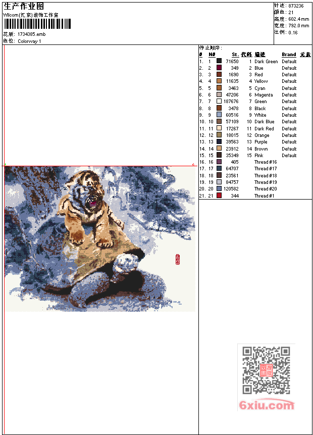 老虎乌龟富贵图工艺精品 点此上传花版兑乐绣币/现金 emb花版参数: 大小:522.50 KB / 尺寸:792*602[毫米] / 针数:873236针 / 线色:21 / 格式:emb / 版本:7 版带文件需绣花软件方可打开,可配色打印导出各种格式或直接上机绣。如无绣花软件可下载1:1模拟效果图。 PNG图片信息:大小:6.2 (MB) /图宽*高:2996x2279(像素) 上传作者( 雷人*** ) 获得乐绣币:30个 emb下载 1:1图下载 关闭 相似花型推荐: 梅花 报春图工艺精品 字画 生意兴隆工艺精品 字画 生意兴隆工艺精品 动物 眼镜蛇工艺精品 龙-麒麟-工艺精品 鸟语花香工艺精品 鹤工艺精品 鸟 山鸡 工艺精品 牡丹花工艺精品 老虎 猛虎下山图工艺精品 梅兰竹菊-兰工艺精品 梅花双鸟工艺精品 人物头像毛主席工艺精品 猫咪动物 工艺精品 人物头像 周杰伦工艺精品 上一个花样:龙 双龙戏珠工艺精品 下一个花样:梅花 报春图工艺精品