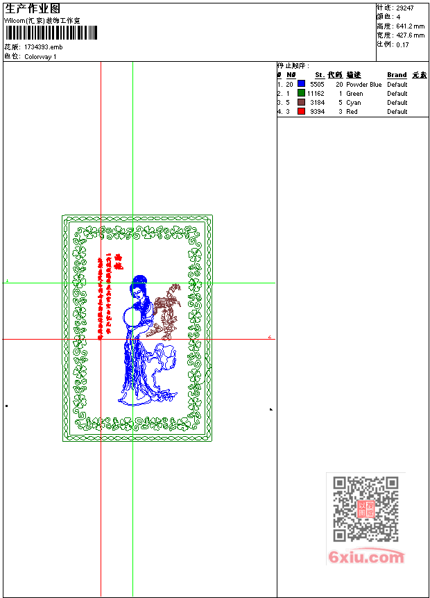 美女 人物 西施工艺精品 点此上传花版兑乐绣币/现金 emb花版参数: 大小:244.00 KB / 尺寸:428*641[毫米] / 针数:29249针 / 线色:4 / 格式:emb / 版本:7 版带文件需绣花软件方可打开,可配色打印导出各种格式或直接上机绣。如无绣花软件可下载1:1模拟效果图。 PNG图片信息:大小:1.1 (MB) /图宽*高:1618x2426(像素) 上传作者( 雷人*** ) 获得乐绣币:30个 emb下载 1:1图下载 关闭 相似花型推荐: 童子 传统 五子送福图工艺精品 字画 文字书法 工艺精品 卡通 天长地久工艺精品 风景 阁楼 塔工艺精品 松鹤朝阳工艺精品 老虎 四神兽 之 白虎 传统工艺精品 龙 双龙戏珠工艺精品 老虎乌龟富贵图工艺精品 梅花 报春图工艺精品 字画 生意兴隆工艺精品 字画 生意兴隆工艺精品 动物 眼镜蛇工艺精品 龙-麒麟-工艺精品 鸟语花香工艺精品 鹤工艺精品 上一个花样:梅花 鸟 喜上梅梢工艺精品 下一个花样:童子 传统 五子送福图工艺精品