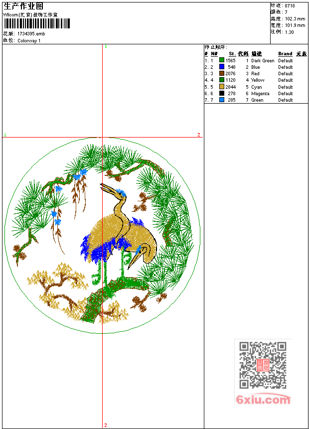 松 仙鹤工艺精品 点此上传花版兑乐绣币/现金 emb花版参数: 大小:89.50 KB / 尺寸:102*102[毫米] / 针数:8723针 / 线色:7 / 格式:emb / 版本:7 版带文件需绣花软件方可打开,可配色打印导出各种格式或直接上机绣。如无绣花软件可下载1:1模拟效果图。 PNG图片信息:大小:0.2 (MB) /图宽*高:386x387(像素) 上传作者( 雷人*** ) 获得乐绣币:30个 emb下载 1:1图下载 关闭 相似花型推荐: 梅花 鸟 喜上梅梢工艺精品 美女 人物 西施工艺精品 童子 传统 五子送福图工艺精品 字画 文字书法 工艺精品 卡通 天长地久工艺精品 风景 阁楼 塔工艺精品 松鹤朝阳工艺精品 老虎 四神兽 之 白虎 传统工艺精品 龙 双龙戏珠工艺精品 老虎乌龟富贵图工艺精品 梅花 报春图工艺精品 字画 生意兴隆工艺精品 字画 生意兴隆工艺精品 动物 眼镜蛇工艺精品 龙-麒麟-工艺精品 上一个花样:风景 乡村风光工艺精品 下一个花样:梅花 鸟 喜上梅梢工艺精品